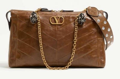 バッグ全体に柔らかな上品さと深みを与えている。このパッチワークのデザインは、ヴァレンティノならではの高品質な素材感を表現しており、使うたびにその美しい質感を感じることができる。