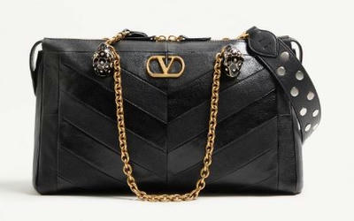 特に注目すべきは、バッグに施されたパンサーの頭のエナメル装飾だ。このデザインは、ヴァレンティノのアーカイブコレクションに度々登場した「パンサー」にインスパイアを受けており、エナメル加工で精巧に仕上げられたパンサーの頭がバッグの最大の特徴となっている。その頭部にはスワロフスキークリスタルが散りばめられており、ヴィンテージジュエリーのように輝き、バッグに華やかさを加えている。
